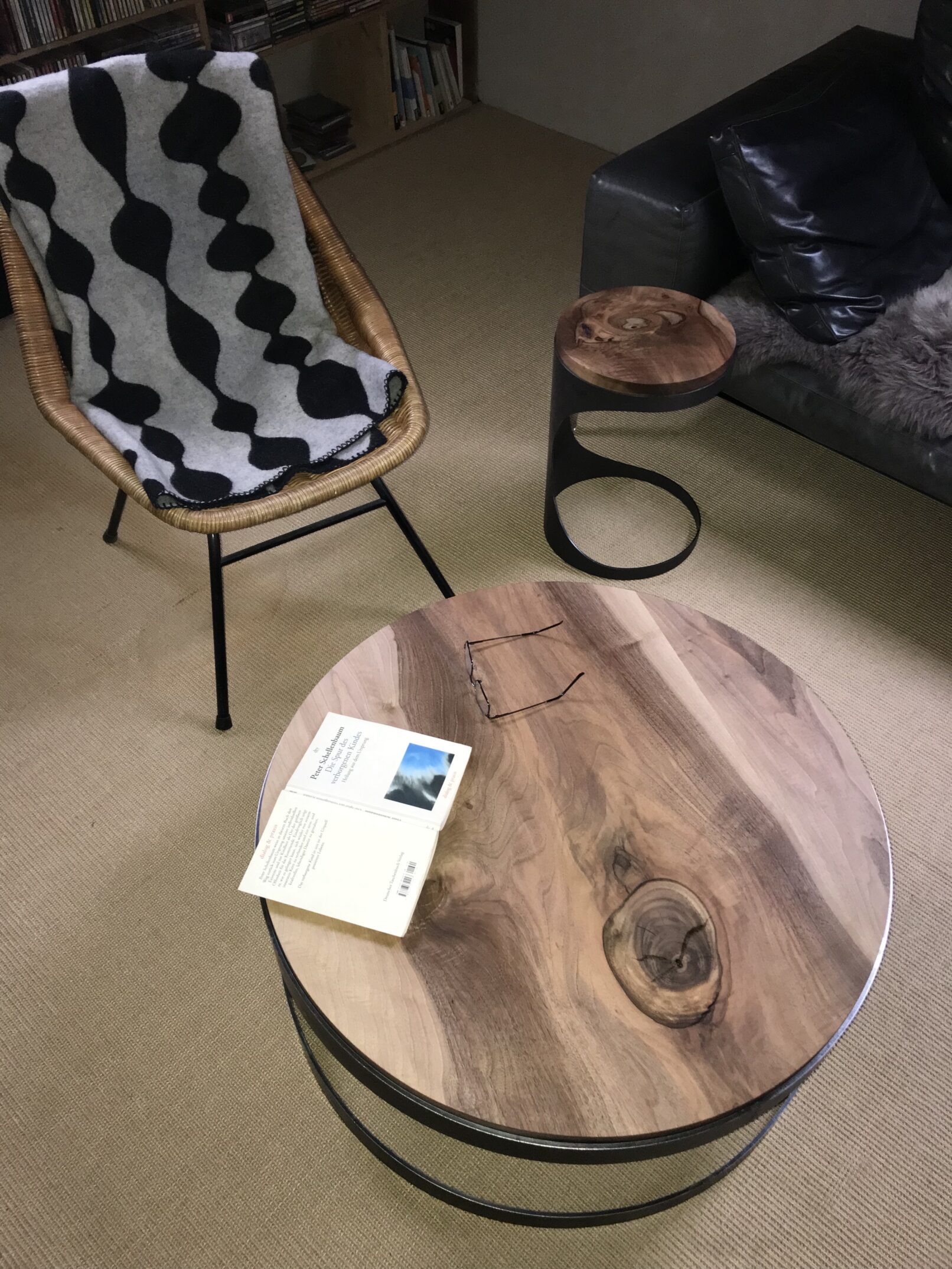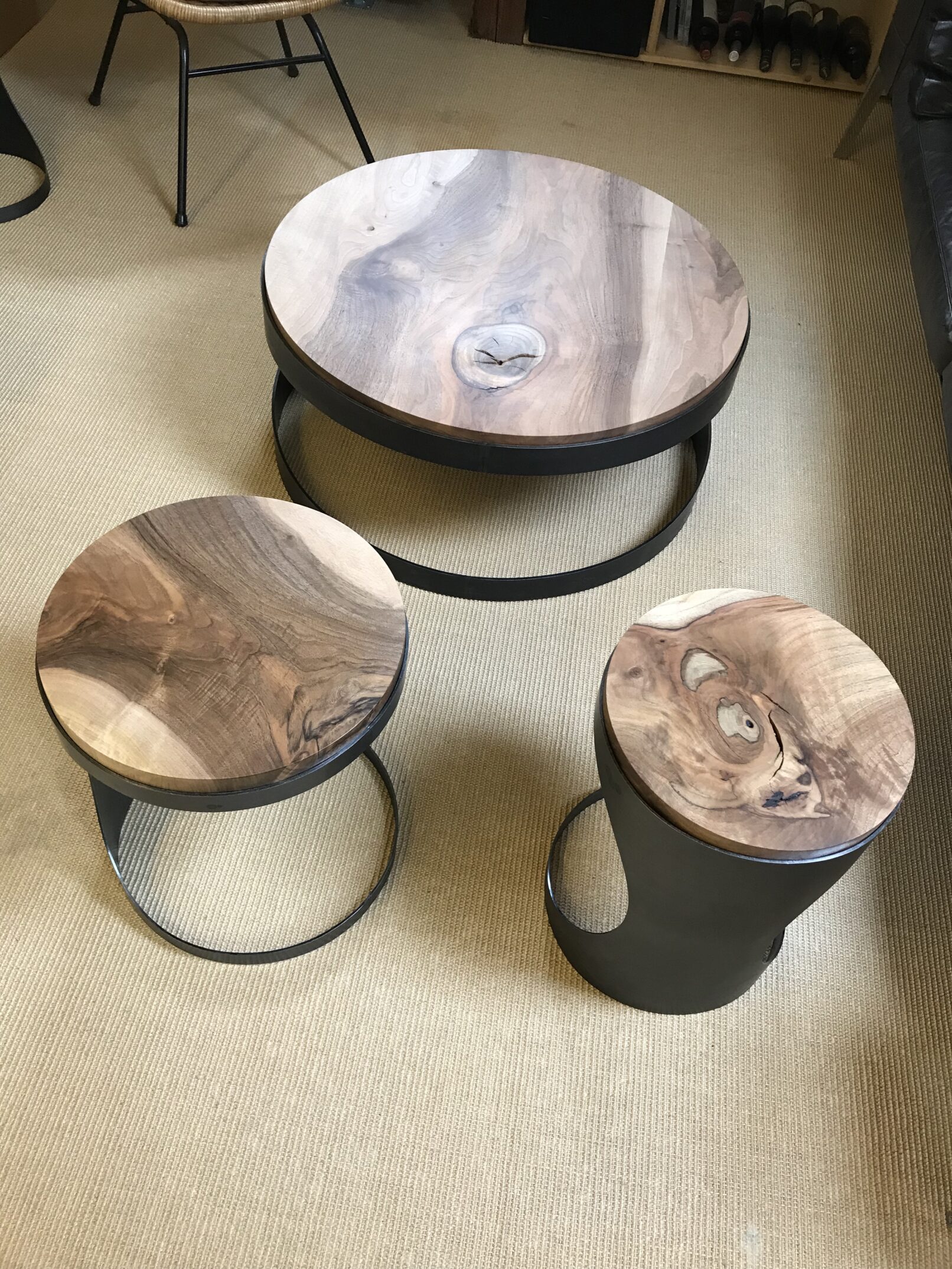 Drei verschiedene Modelle in gleicher Machart. Material: Nuss / Stahl