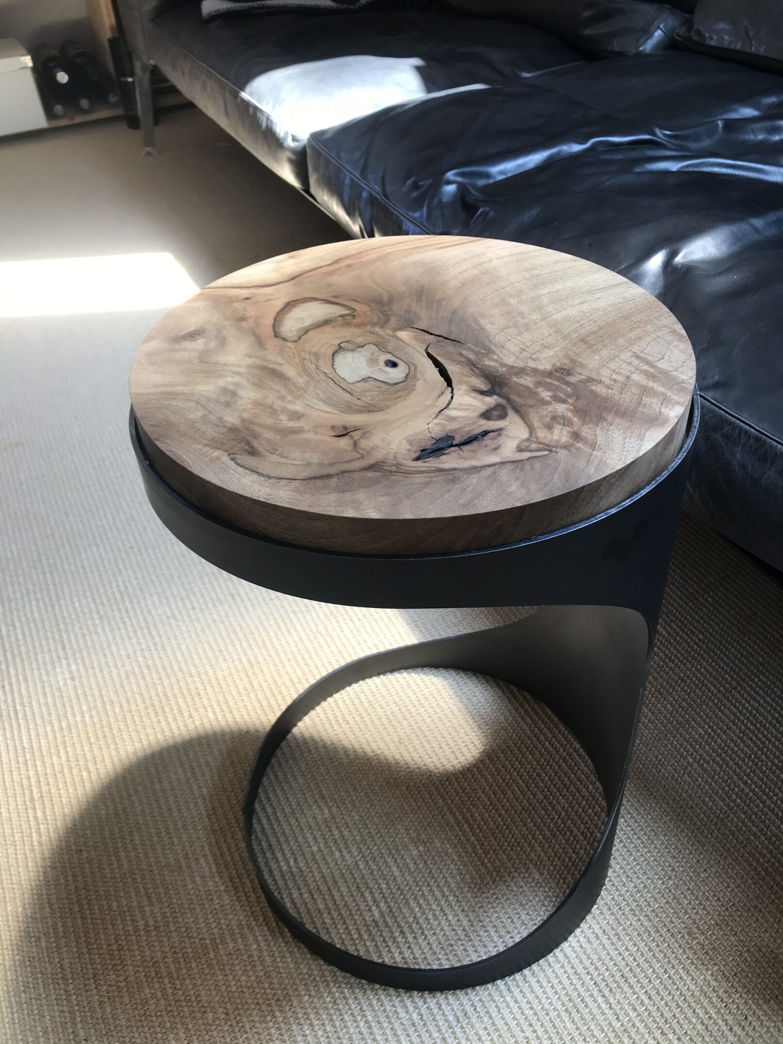 Passt neben den bequemen Sessel oder neben das Sofa. Kann durch seine Höhe und Form auch über die Sofasitzfläche geschoben werden. (ø 30cm)
